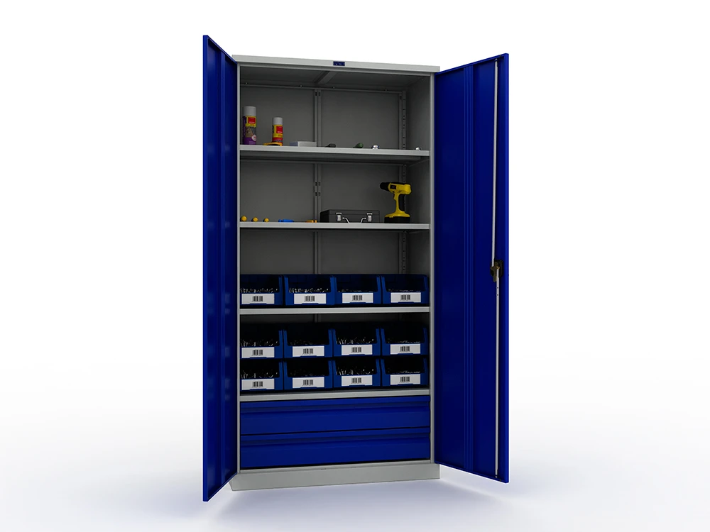Предназначен для хранения различных инструментов и приспособлений, а так-же запасных частей и расходных материалов в мастерских, цехах и производственных помещениях.Шкафы для инструментов TC-1995 можно индивидуально скомпоновать под свои нужды выбрав необходимые вам комплектующие: перегородки, ящики (большие выдвижные ящики TCF 87x45 или малые выдвижные ящики TCF 42x45) так-же можно выбрать различные полки или перфорированный экран.
