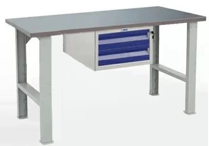- Опоры и тумбы верстака окрашены стойким порошковым покрытием «шагрень». В отличие от гладких красок, его крайне трудно повредить или поцарапать инструментами.